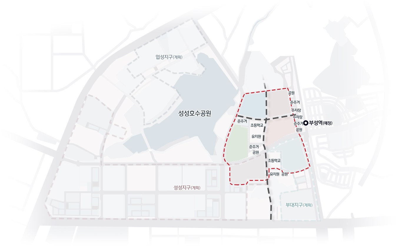 부성지구를 둘러싼 가로, 기반시설, 교통,